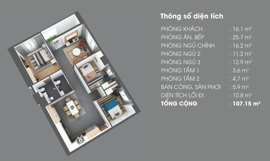 - Diện tích: 107m2
