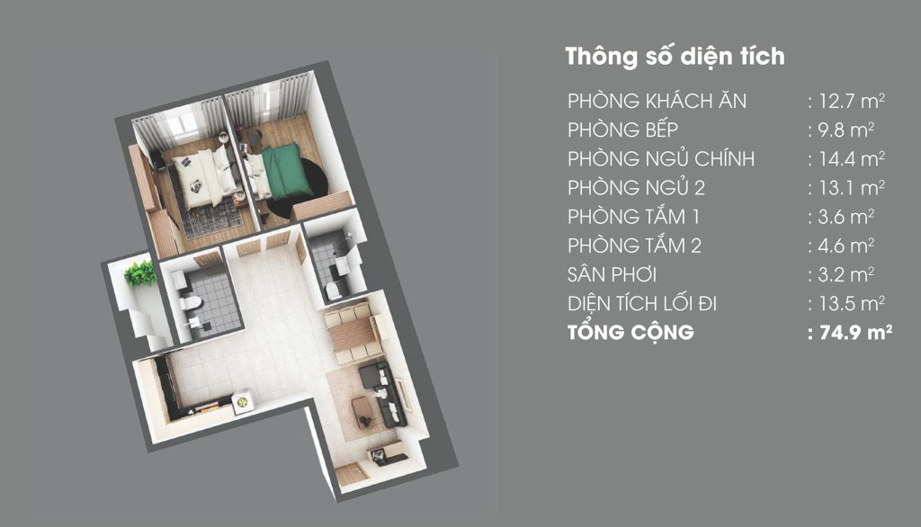 - Bàn giao: 75m2