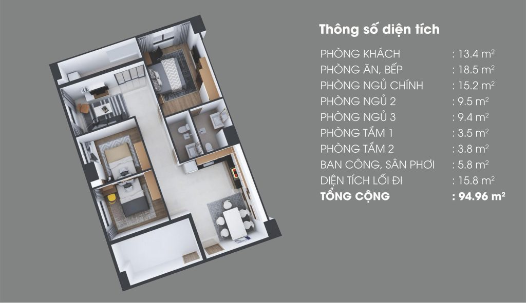 - Diện tích: 95m2
